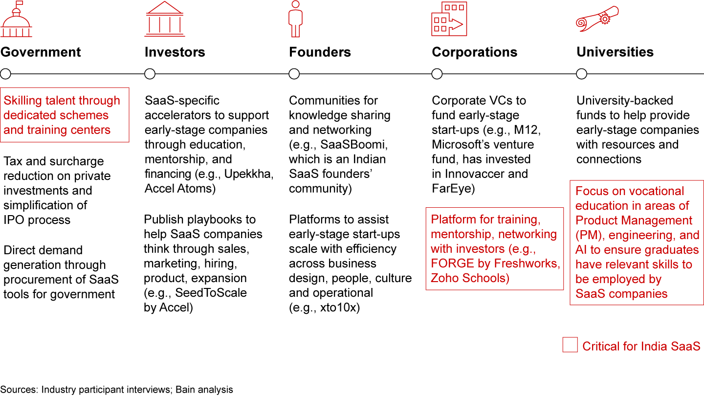 - Corporates: Provide funds, training, and mentorship to Indian SaaS companies