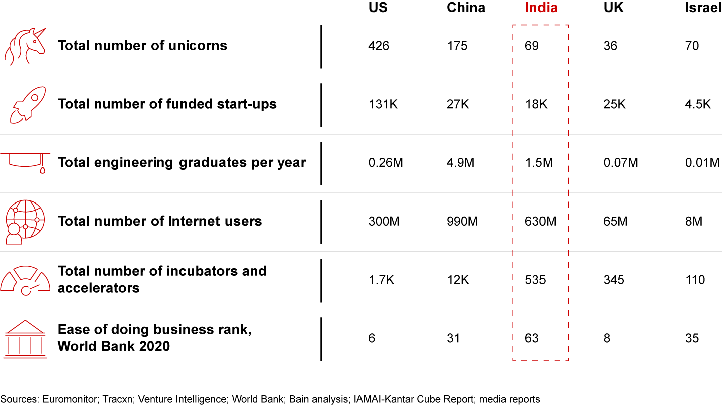 - The Indian start-up ecosystem remains robust, with a strong base of funded start-ups and unicorns. An increase in engineering graduates and Internet users is expected to further support the growth of this ecosystem.