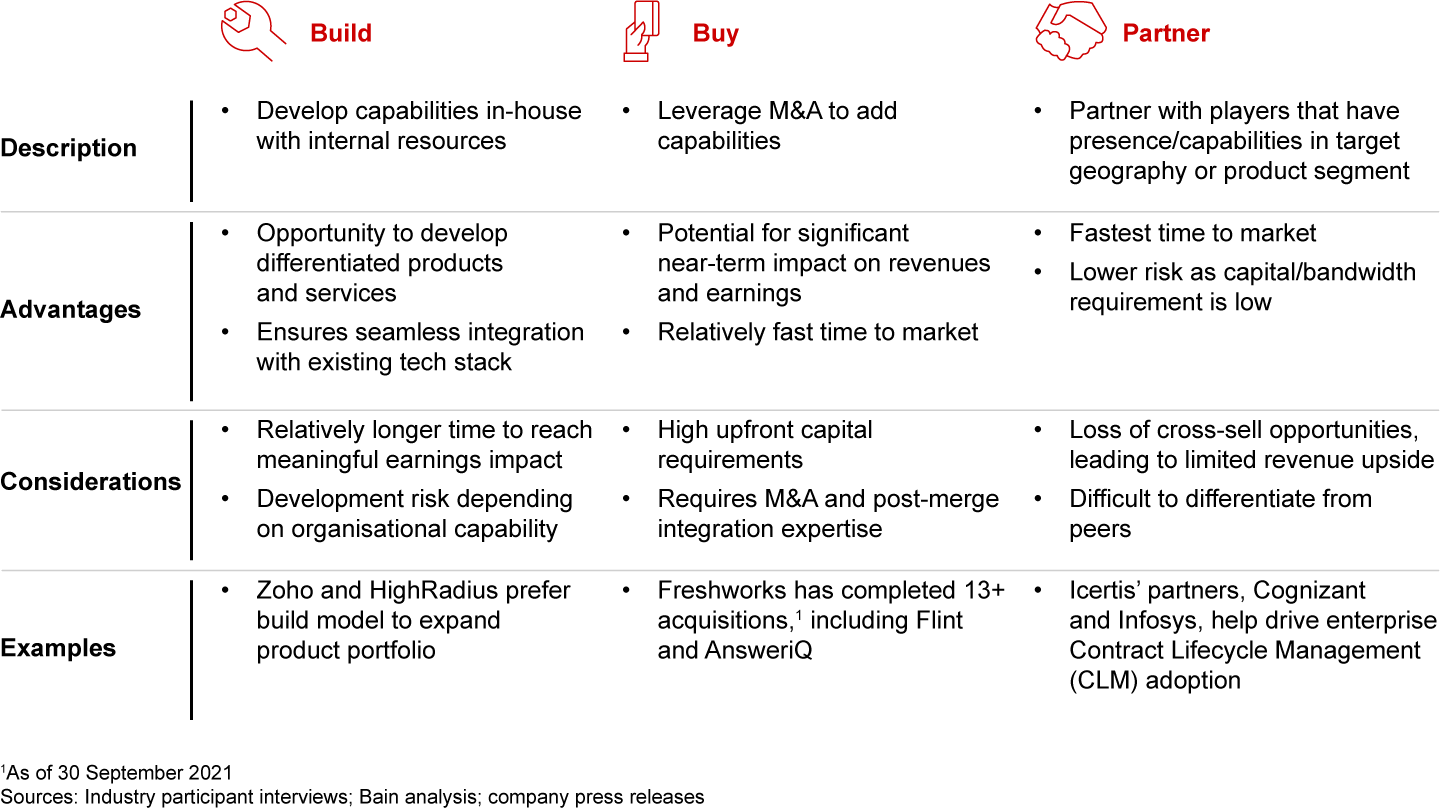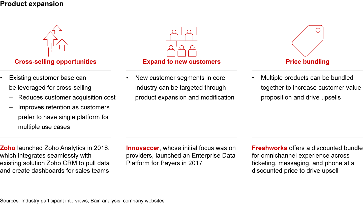 - For product expansion, companies should evaluate cross-sell opportunities and use case synergies