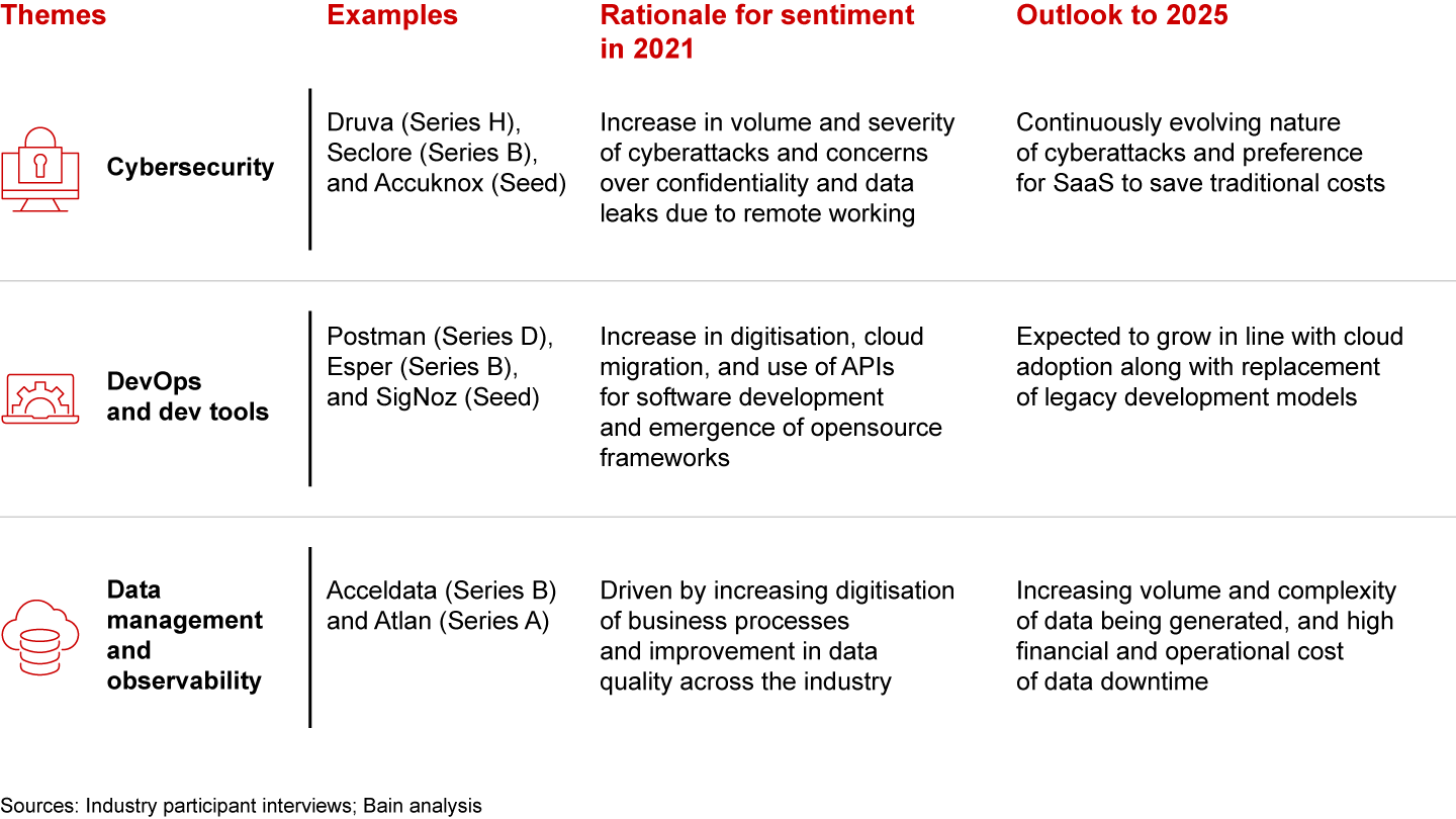 - Horizontal infrastructure software: cybersecurity, DevOps and dev tools, and data management and observability